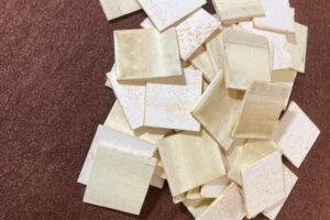 とりあえず、古い鍵盤を剥がしますが、ヒビだらけなのでバラバラになり、剥がしにくいです。